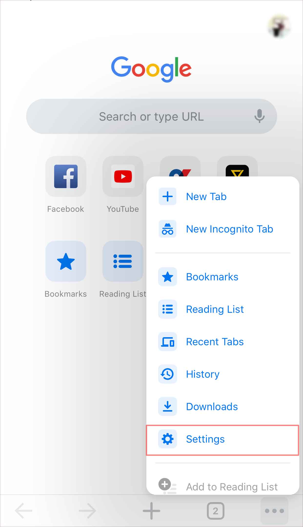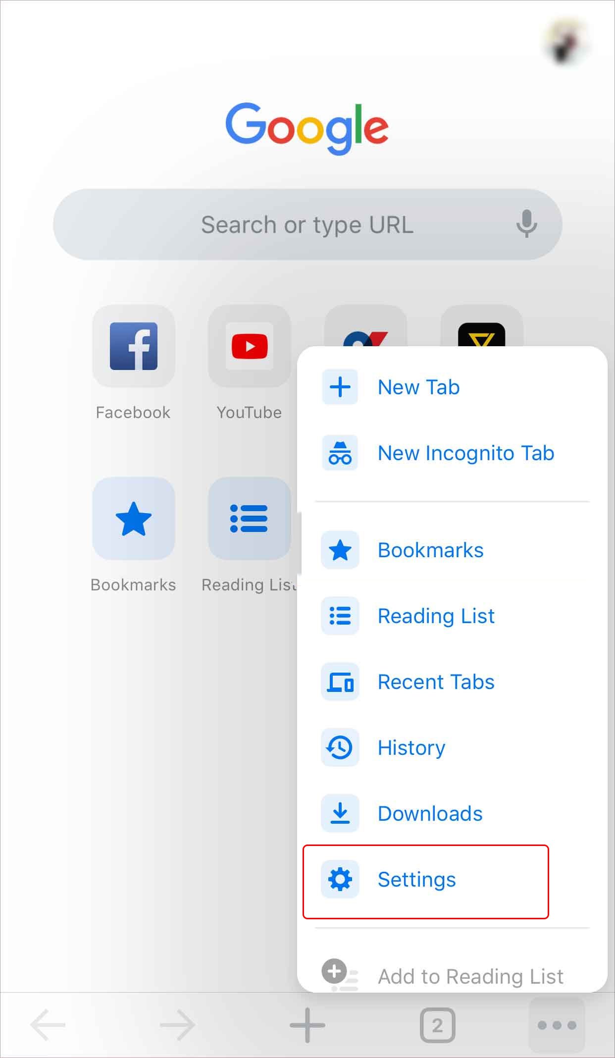 Abra o aplicativo Google Chrome.Toque no ícone de três pontos horizontais no canto direito do botão.Selecione Configurações.