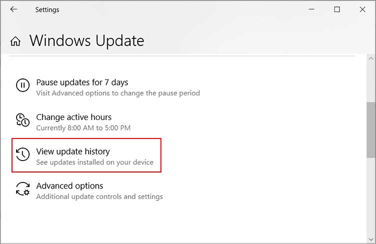 Primeiro, inicialize o computador no modo de segurança. Em seguida, pressione o logotipo do Windows e I key e escolhaAtualização e segurança. Selecione a opção Visualizar histórico de atualizações .