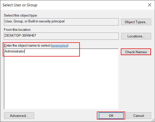 Abaixo de Digite o nome do objeto a ser selecionado, digite seu nome e pressione Verificar nomes. Se aceitar, pressione OK. Caso contrário, tente digitar outro nome.