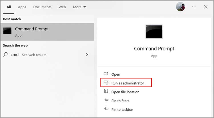 Entre no modo de segurança.Pressione aTecla Windows e digite Prompt de comando. Selecione o Prompt de comando e escolha Executar como administrador .
