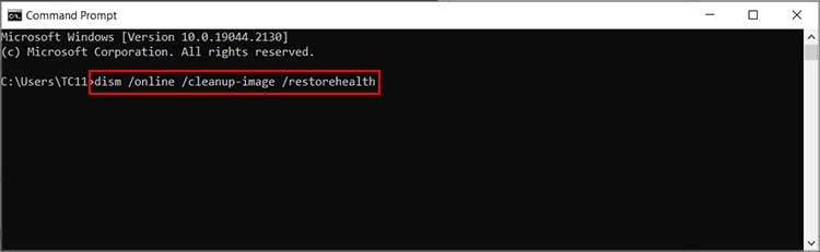 Depois disso, execute este comando: dism/online/cleanup-image/restorehealth.