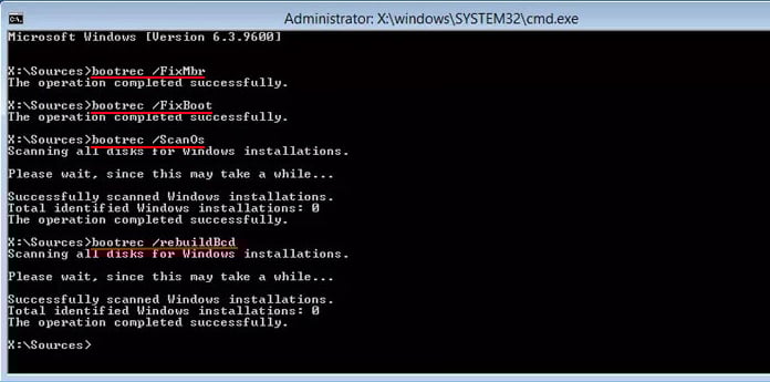Além disso, você pode executar os comandos Bootrec se o problema não for resolvido. O Bootrec.exe ajuda a detectar e corrigir erros relacionados ao setor de inicialização, registro mestre de inicialização (MBR) e armazenamento de dados de configuração de inicialização (BCD). Além disso, considere fazer backup dos arquivos BCD antes de passar para as etapas abaixo.
