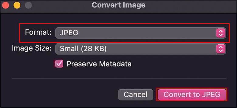 Altere o Tamanho da imagem se necessário. Em seguida, Converter para JPEG.