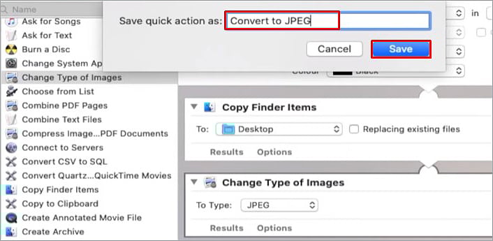 Para converter sua imagem para JPG, você deve criar um novo serviço usando o Automator, adicionar este serviço para o menu de contexto e converta a imagem a partir daí. Aqui estão as etapas exatas para fazer isso: