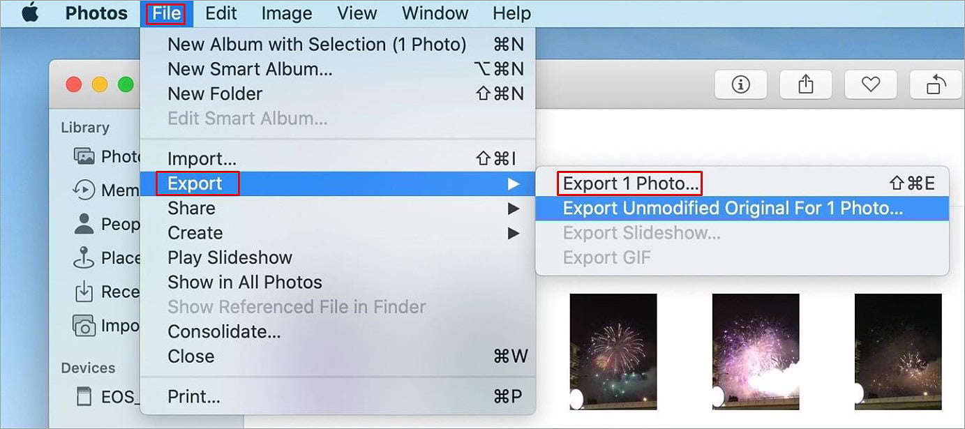Abra Fotos. Na barra de menus, clique em Arquivo > Importar.Escolha as imagens que deseja converter.Selecione uma ou várias imagens no aplicativo de fotos e vá para Arquivo > Exportar na barra de menus. Clique em Exportar fotos.