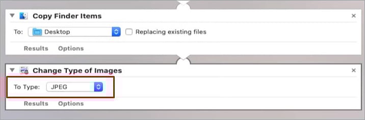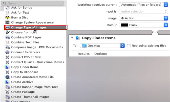 Novamente, procure por Alterar tipo de imagens e arraste e solte-o no lado direito da janela.