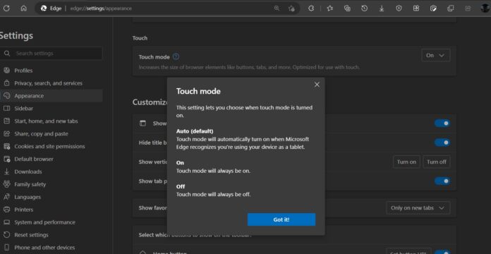 Para conseguir isso, a empresa está testando um novo “Modo de toque” que pode ser encontrado no canal Microsoft Edge Canary. no momento, está disponível apenas para usuários selecionados no canal de teste e não para todos.