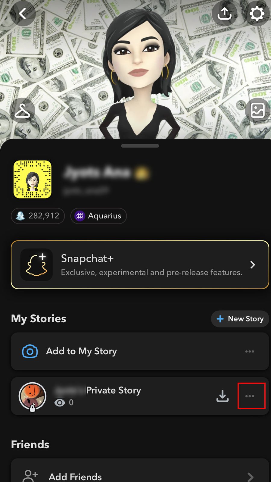 As histórias privadas estão localizadas em Minhas histórias com um ícone de cadeado. Ao lado de sua história privada, toque nosTrês pontos.
