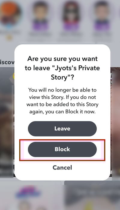 Você pode escolher o Bloquear opção se você não quiser ser adicionado novamente na mesma história privada.
