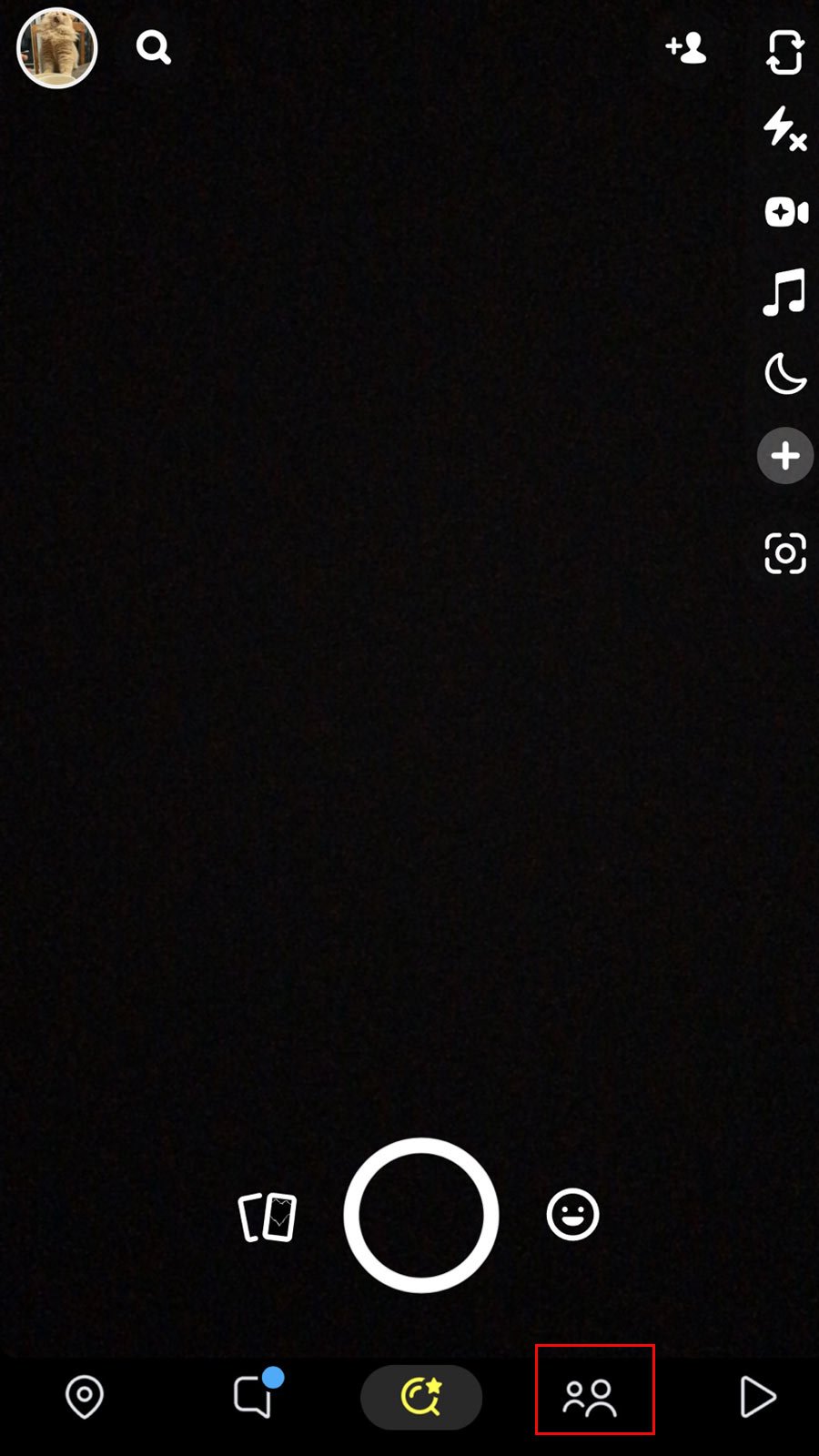 Abra o aplicativo Snapchat. Vá para o ícone Duas pessoas diretamente na câmera na parte inferior da tela.