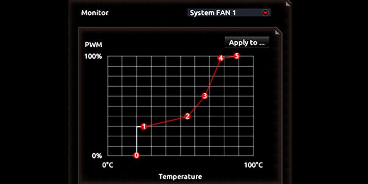 Uma curva de ventilador personalizada é um pequeno gráfico que informa aos ventiladores quando acelerar ou desacelerar. Cada ponto no gráfico corresponde a uma temperatura e velocidade do ventilador. Por exemplo, você pode dizer ao computador para aumentar os ventiladores ao máximo quando atingir 80 graus, em vez de aumentar ao máximo a 75 graus, se esse for o padrão atual.