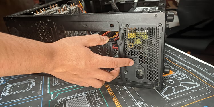 Desligue o computador, desligue a PSU e desconecte-a da tomada. Você não quer que o computador funcione quando você chegar dentro dele.