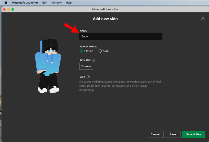 Como adicionar uma capa no Minecraft Java em um Mac