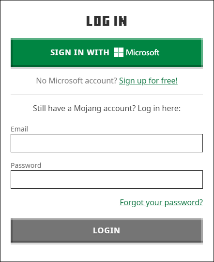 Faça login na sua conta em minecraft.net no seu PC com Windows.