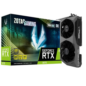 O Zotac Twin Edge OC oferece os mesmos núcleos GDDR6 de 8 GB e 256 bits padrão e 5888 núcleos CUDA da maioria da linha RTX 3070. Esta placa troca o cooler de ar com ventoinha tripla visto em 3070 de ponta por uma configuração de ventoinha dupla.