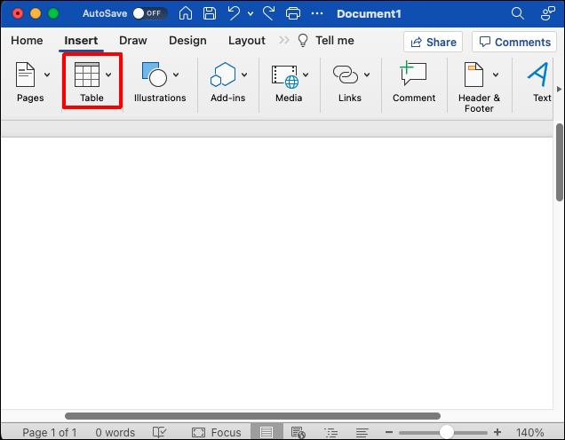 Vá para o cartão”Inserir”no Barra de ferramentas do Word.