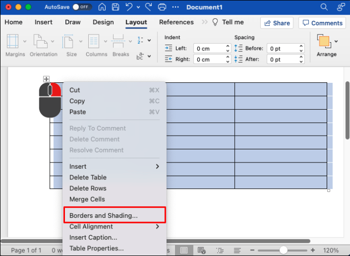 Clique com o botão direito na seleção e selecione”Borders and Shading.”