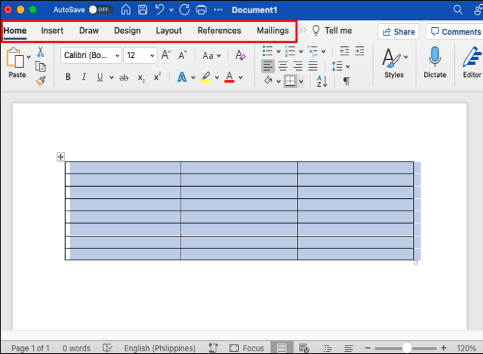 Vá para “Tabela Ferramentas.”
