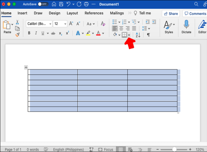 Clique na seta ao lado de”Bordas”e escolha”Sem bordas.”