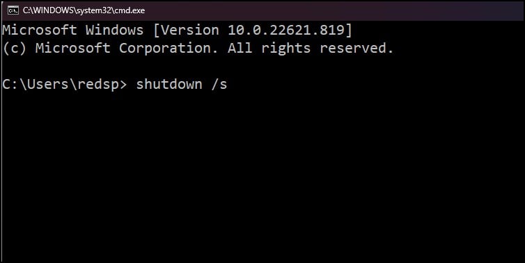 Abra Executar e digite powershell na caixa de diálogo Digite shutdown/s ou shutdown-s no console para iniciar o processo de desligamentoPara outras variações de comandos de desligamento, consulte a tabela acima de.
