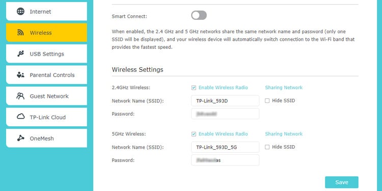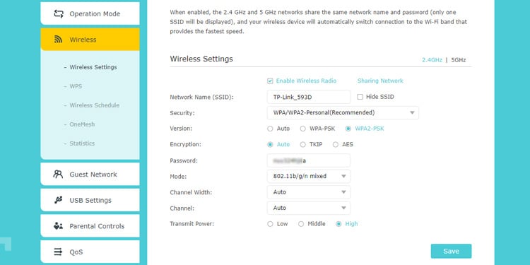 Vá para Wi-Fi, Configurações sem fio ou seção semelhante na página de configurações do roteador.Altere o Wi-Fi SSID ou a senha conforme apropriado para o seu cenário aqui. Certifique-se de usar uma senha forte que não seja fácil de adivinhar.