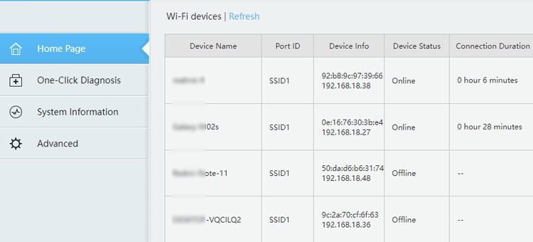 Acesse o painel do roteador conforme feito anteriormente. Você pode verificar a lista de dispositivos conectados em várias guias, dependendo do roteador. Isso inclui a página inicial padrão ou guias como Dispositivos conectados, Status, Mapa de rede, Lista de clientes DHCP, Lista de controle de acesso etc. O nome do dispositivo deve ajudá-lo a reconhecer qual dispositivo pertence a qual usuário.