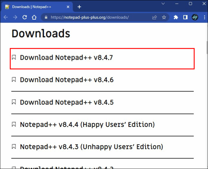 Você também pode baixar o”Notepad++”do Site do Notepad++. Clique na versão de 64 bits mais recente listada na parte superior.