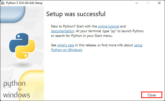 Primeiro, vá para o arquivo de instalação do Phyton, clique duas vezes nele e selecione”Instalar agora”na janela pop-up. Clique em”Fechar”quando a instalação estiver concluída.