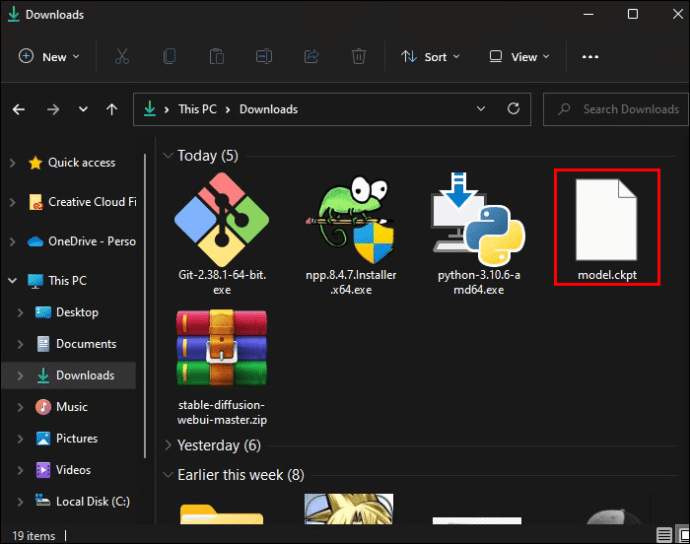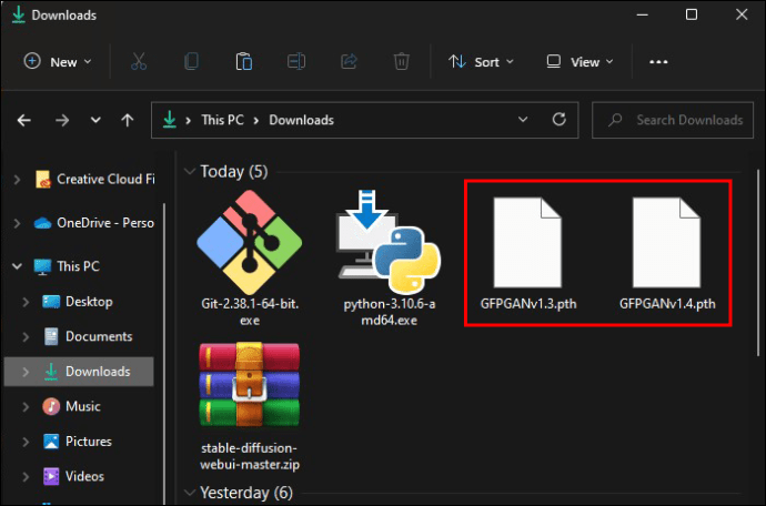Volte para a pasta que contém todos os downloads Encontre os arquivos”GFPGANv1.3.pth”e”GFPGANv1.4.pth”e arraste-os para juntar-se aos outros arquivos SD em sua pasta local SD.