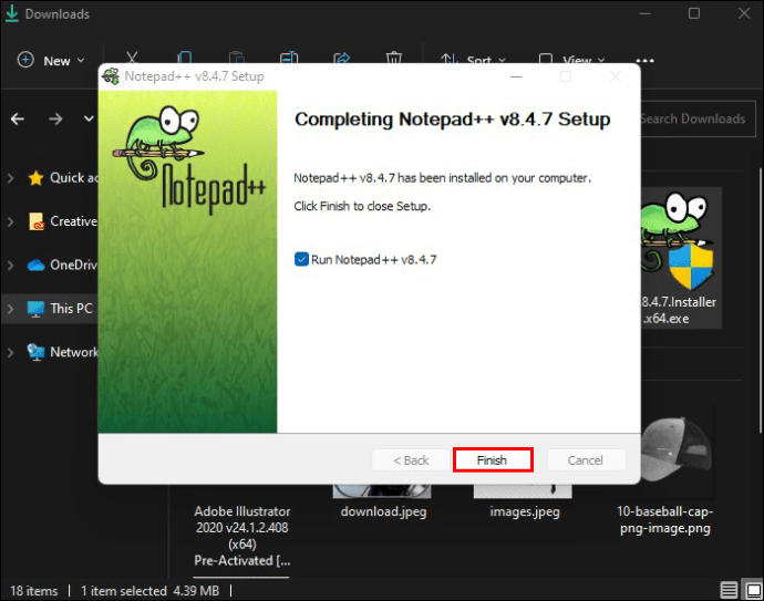 Encontre o arquivo.exe do instalador notepad++ para instalá-lo e clique em”Concluir”.