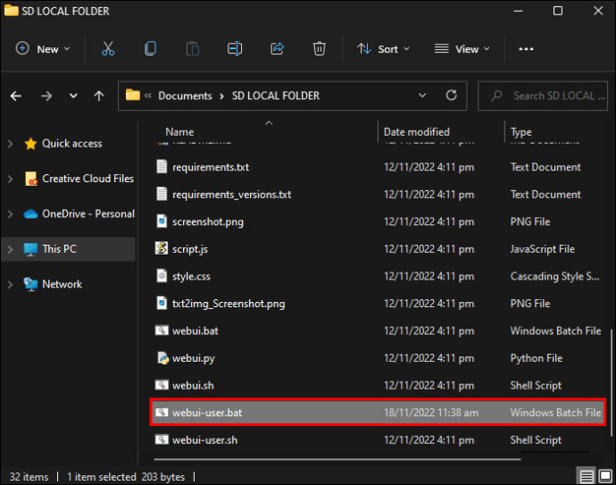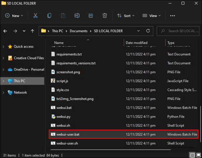 Volte para a pasta local do SD e clique duas vezes no arquivo”webui-user.bat”.