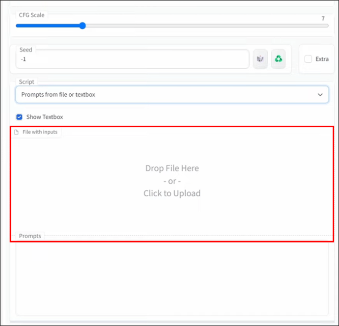 Você pode soltar seu arquivo de texto de prompts na janela”Arquivo com entradas”. Como alternativa, marque a opção”Mostrar caixa de texto”e insira seus prompts na janela”Prompts”.”651″src=”https://i0.wp.com/www.alphr.com/wp-content/uploads/2022/11/lester5.png?resize=690%2C651&ssl=1″>Vá para o local de seu arquivo de texto e arraste o arquivo para a janela. Se fizer alterações no arquivo, você precisará soltar o arquivo atualizado na janela de prompt, pois a IU não o atualizará automaticamente.
