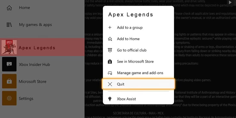Escolha Fechar jogo.