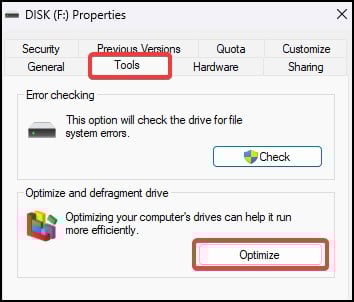 Clique na guia Ferramentas e, em seguida, clique no botão Otimizar
