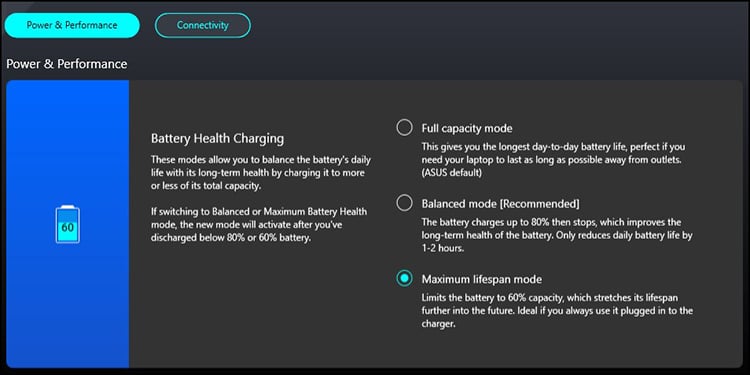 Para resolver isso, evite carregar seu laptop por longos períodos de tempo ou quando for dormir. Isso pode ajudar significativamente a manter a integridade da vida útil da bateria do seu dispositivo. O uso de software de limitação de carga que limita a capacidade de carga também pode ajudar os usuários a manter a integridade da bateria e prolongar sua longevidade.