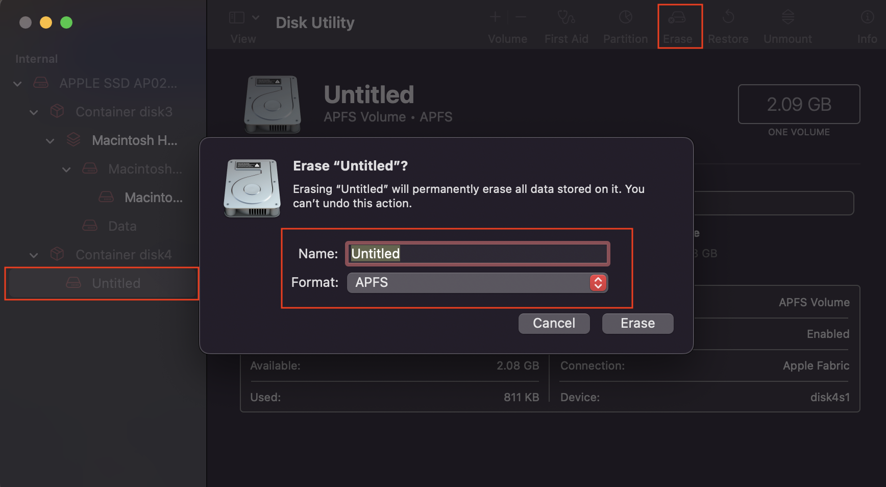 Apagar uma partição excluirá todos os dados armazenados nessa partição específica. Este método não exclui a partição em si, mas garante que todos os arquivos dentro dela sejam removidos permanentemente. Então, aqui está como você apaga uma partição em um Mac: