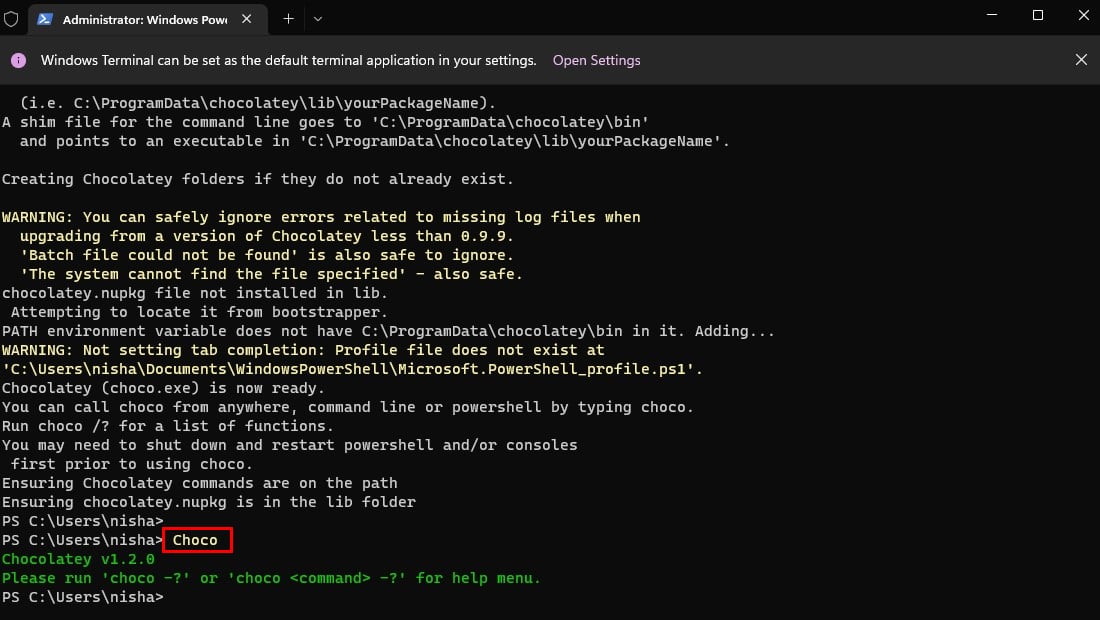 Nota: Chocolatey é compatível com Windows 7 e posterior.
