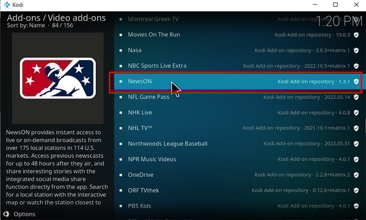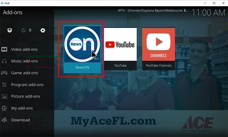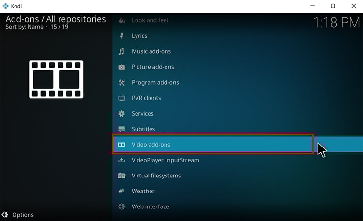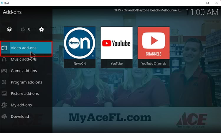 Você pode ver todos os Complementos de vídeo instalados. Escolha e abra o complemento.