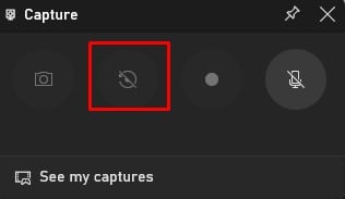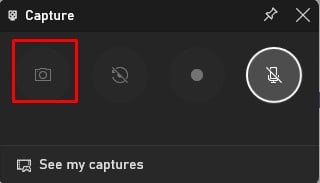 Pressione Windows + G para abrir a barra de jogo sobreposição.Clique no ícone da câmera na barra do jogo para abrir a janela de captura.O ícone da câmera ou Windows + Alt + PrtSc permite faça uma captura de tela da sua área de trabalho.