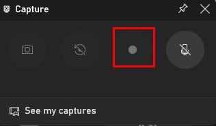 O ícone de gravação ou o ícone com o ponto branco começa a gravar sua tela. Sua tecla de atalho é Windows + Alt + R.