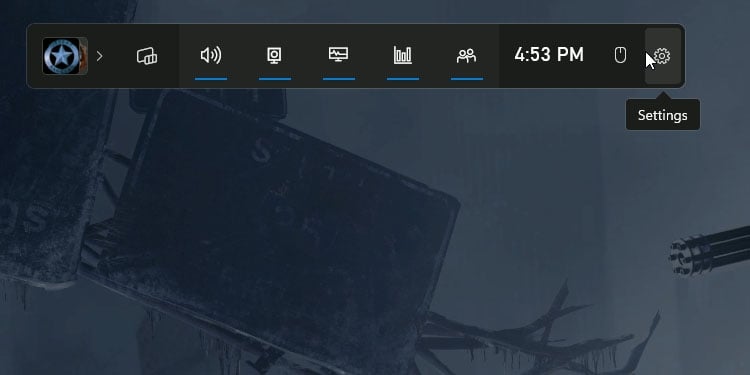 Aqui estão as principais opções que você encontrará no Barra de jogos do Xbox (da esquerda para a direita):