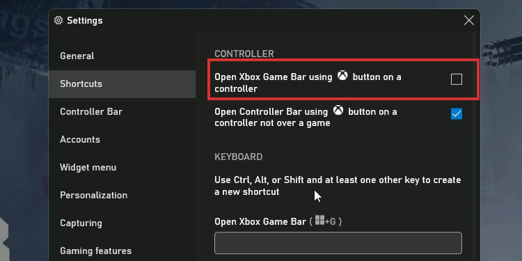 Se você joga no seu PC com um controle do Xbox, você pode habilitar uma opção no menu Atalhos para abrir o software com o botão Xbox no controle.