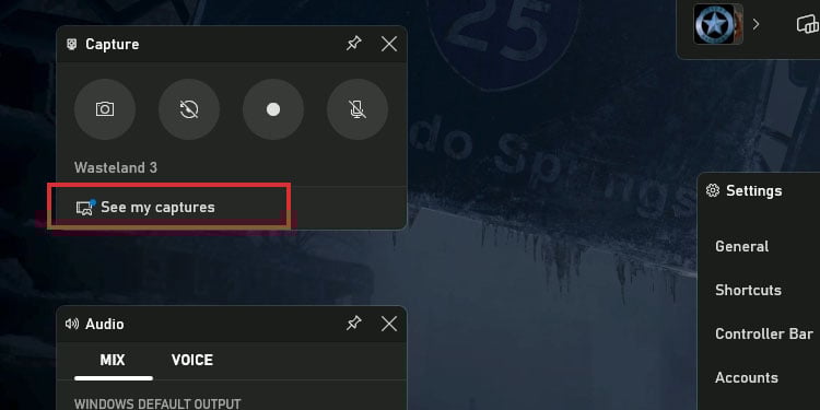 Por fim, suas capturas irão para a sua pasta de vídeos por padrão na subpasta”Capturas”. Se você não conseguir encontrar suas capturas, clique em “Ver minhas capturas“à esquerda.