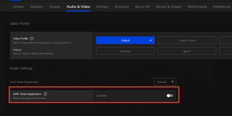 Ainda assim, ambos os programas apresentam alguma supressão de ruído. Por exemplo, no software da AMD, você pode encontrar uma opção de impressão de ruído no submenu Áudio.
