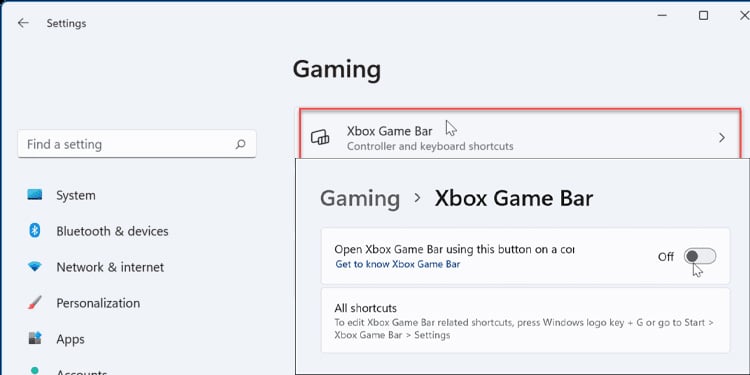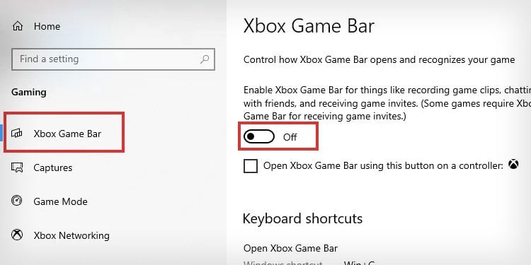 Vá para Barra de jogos do Xbox. Mude o interruptor para ON se você vê-lo OFF.