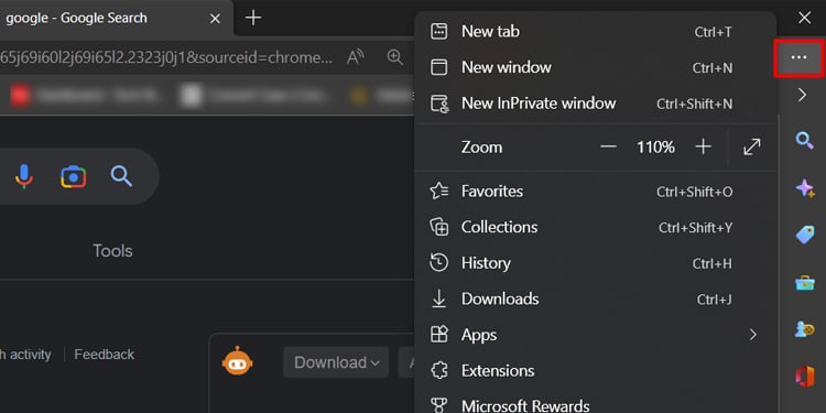Inicie o navegador Microsoft Edge. Selecione o menu horizontal de três pontos na barra de endereço.