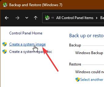Clique no link”Criar backup do sistema”na barra lateral da página Backup e restauração.