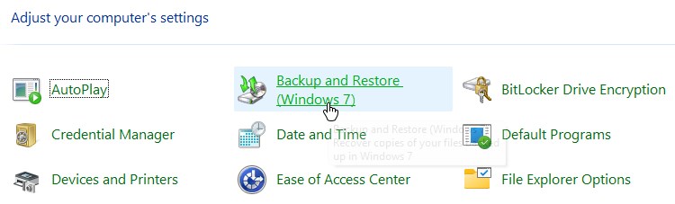 Depois de abrir o aplicativo Painel de controle, localize um e clique na opção”Backup and Restore (Windows 7)”.