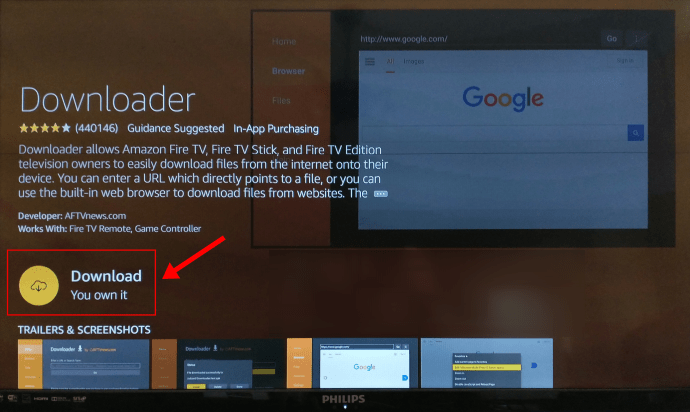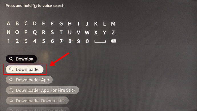 Selecione “Downloader” dos resultados de pesquisa integrados da Amazon App Store.