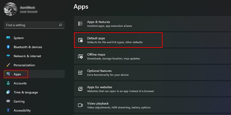Abra Configurações (tecla Windows + I).  Vá para Aplicativos > Aplicativos padrão.